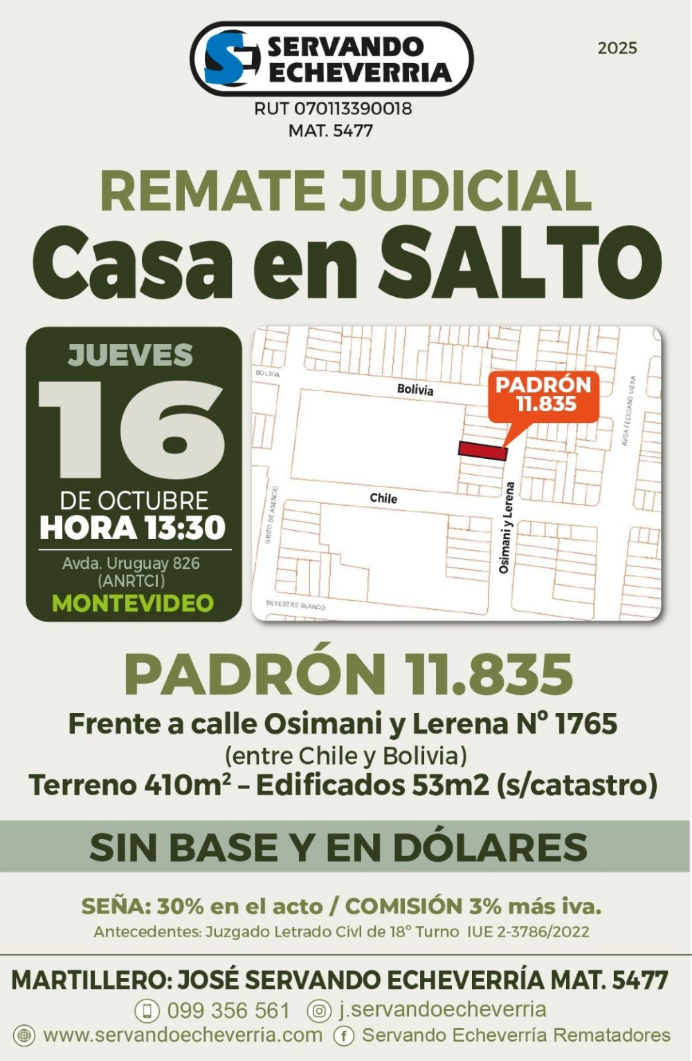Direccion remate: ANRTCI Av. Uruguay 826, Montevideo