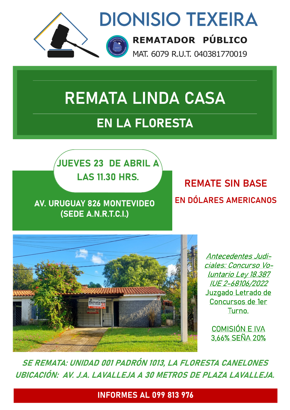 Direccion remate: ANRTCI - Av. Uruguay 826, Montevideo