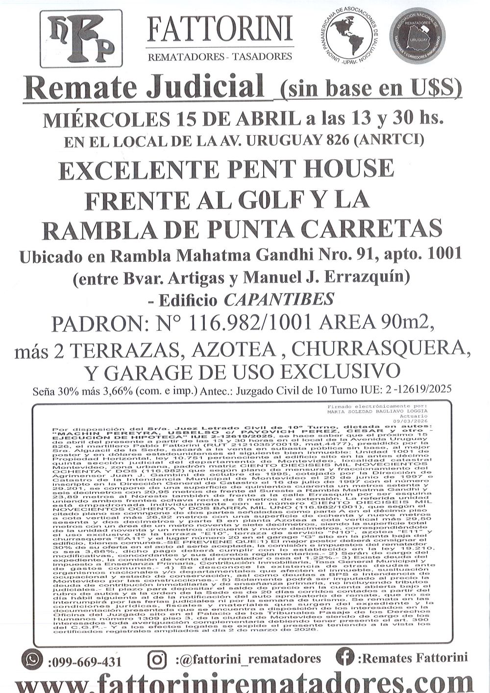 Email rematador: subastas.uy@gmail.com